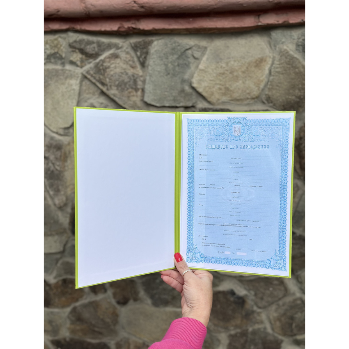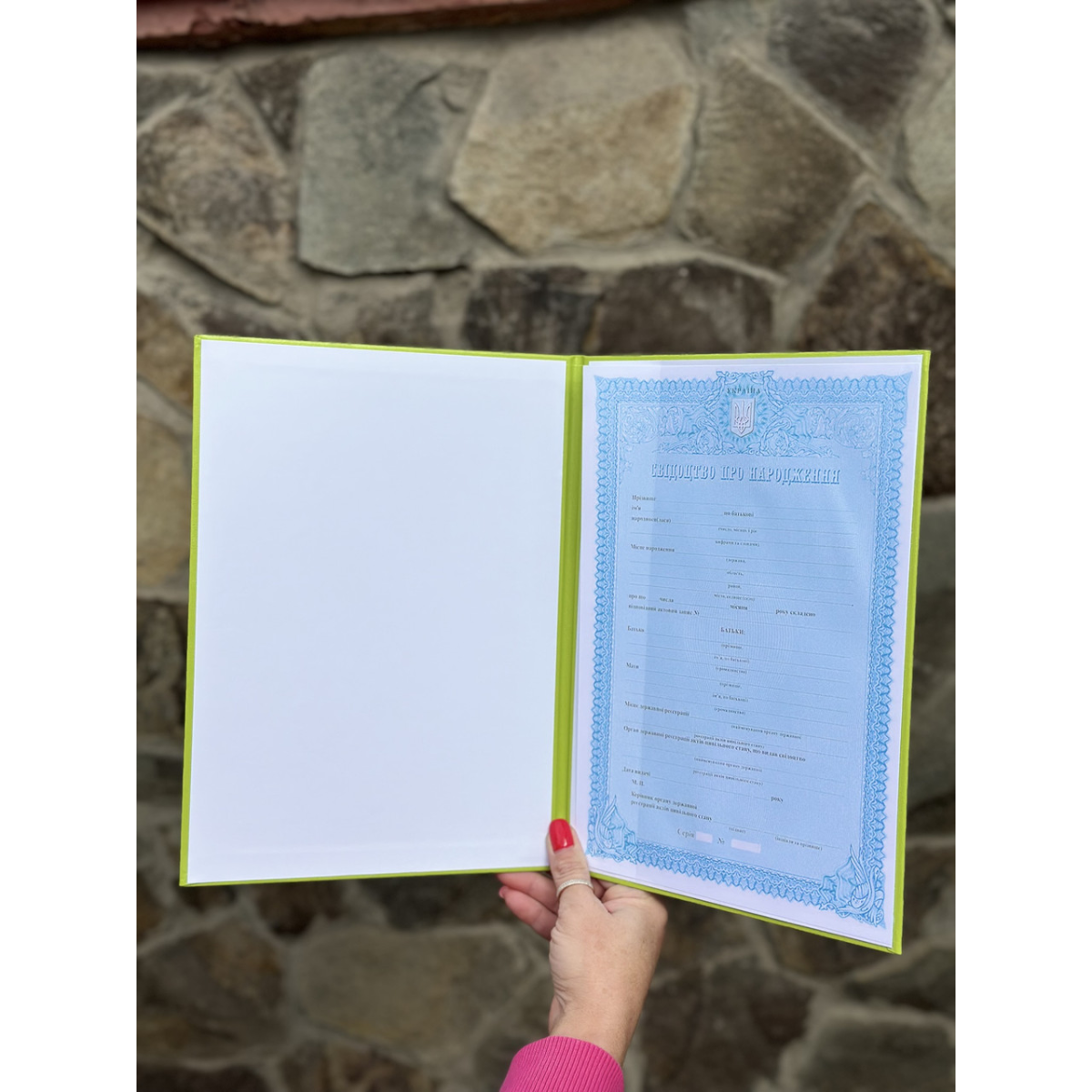 Обкладинка для свідоцтва про народження салатова 195*270 мм