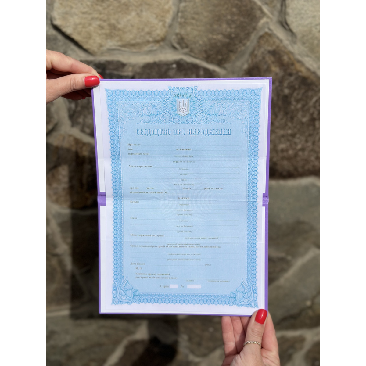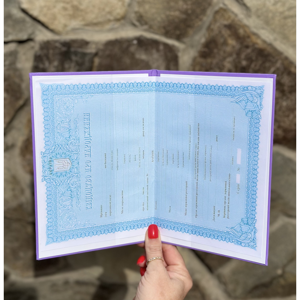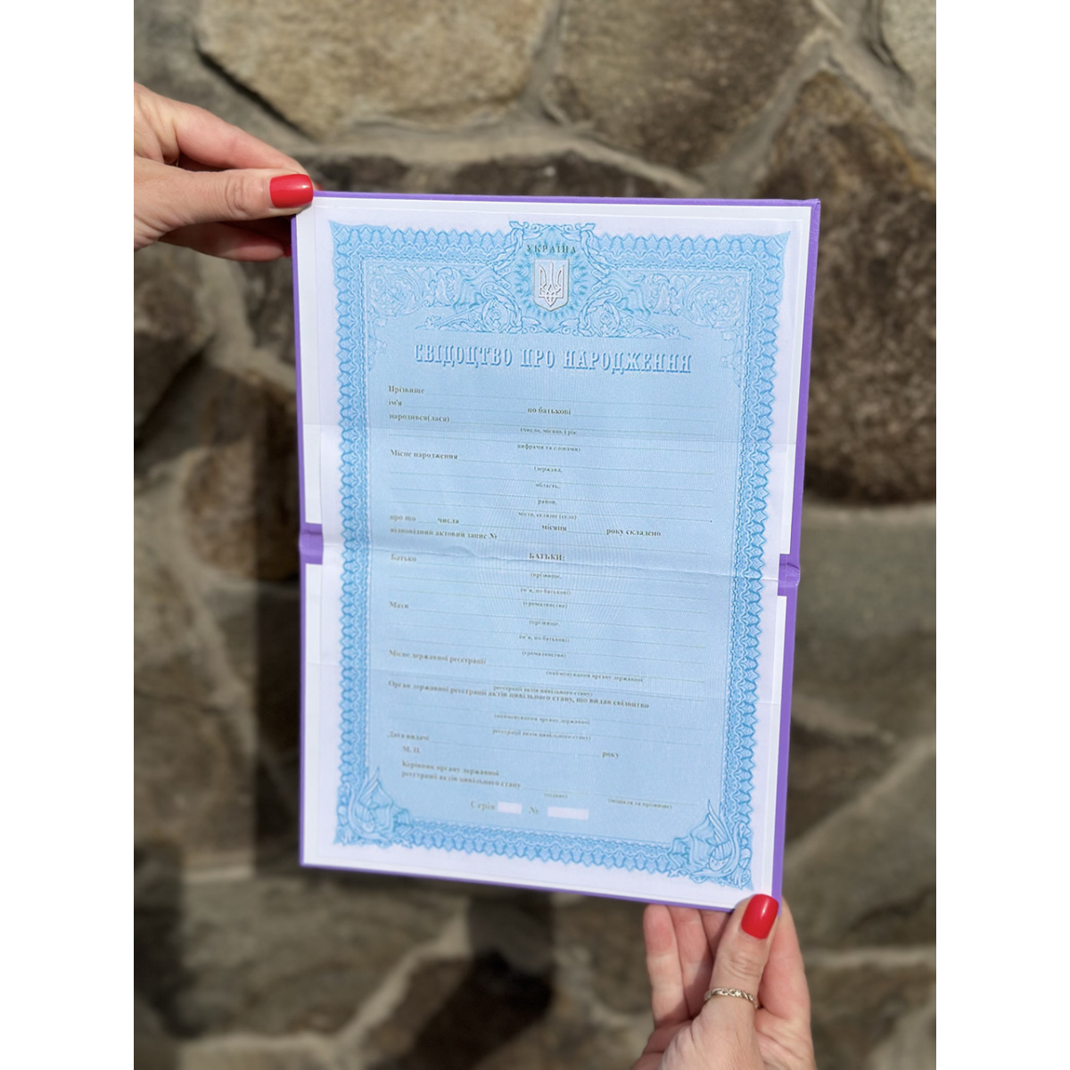 Обкладинка для свідоцтва про народження салатова (фіолетова) (195*130мм) тверда