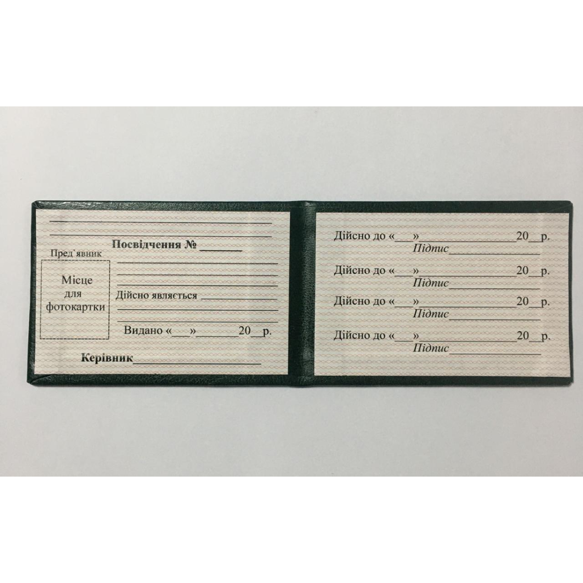 Бланк посвідчення зелене тверде
