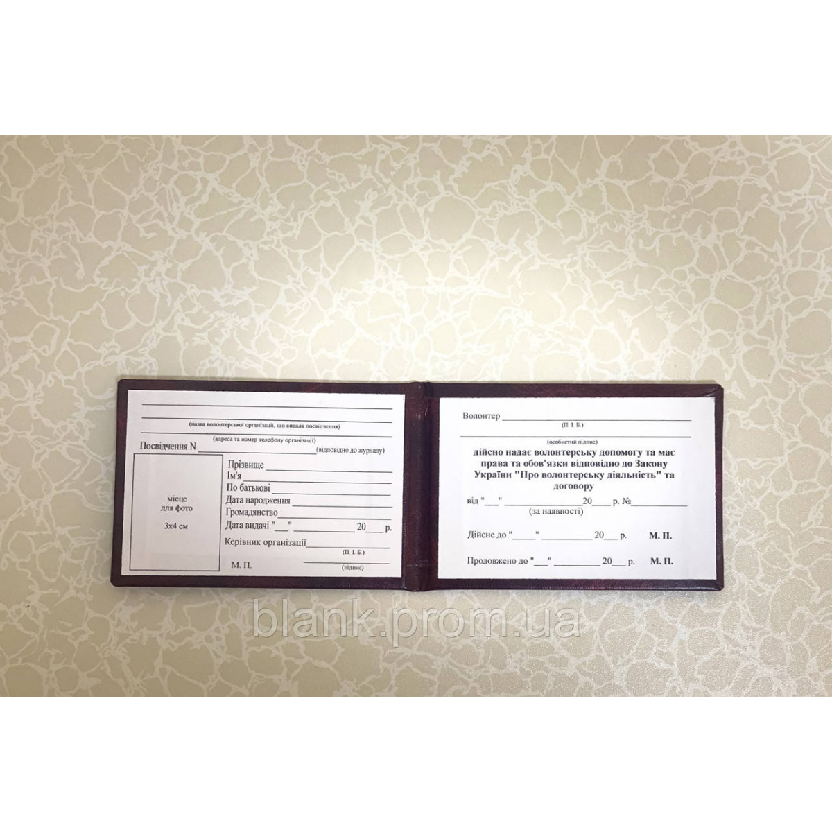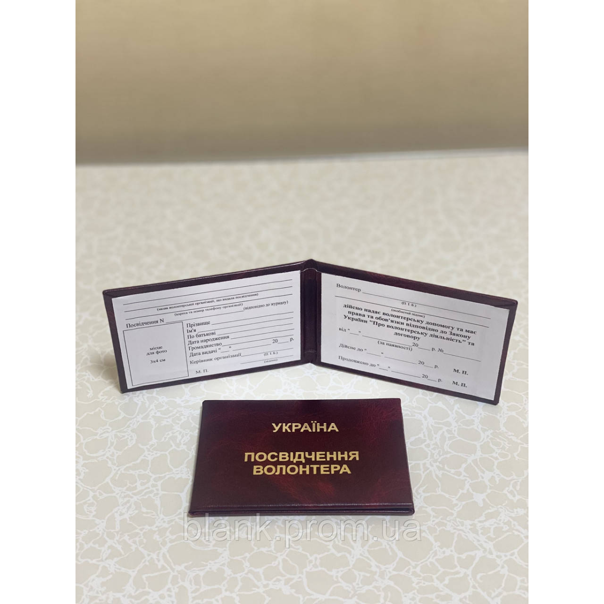Посвідчення волонтера м`яке бордове бланк держзразок