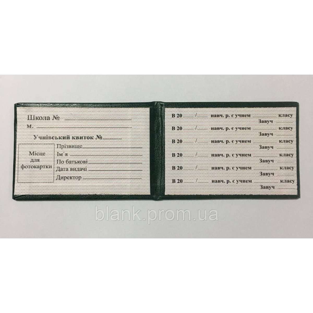 Учнівський квиток зелений бланк