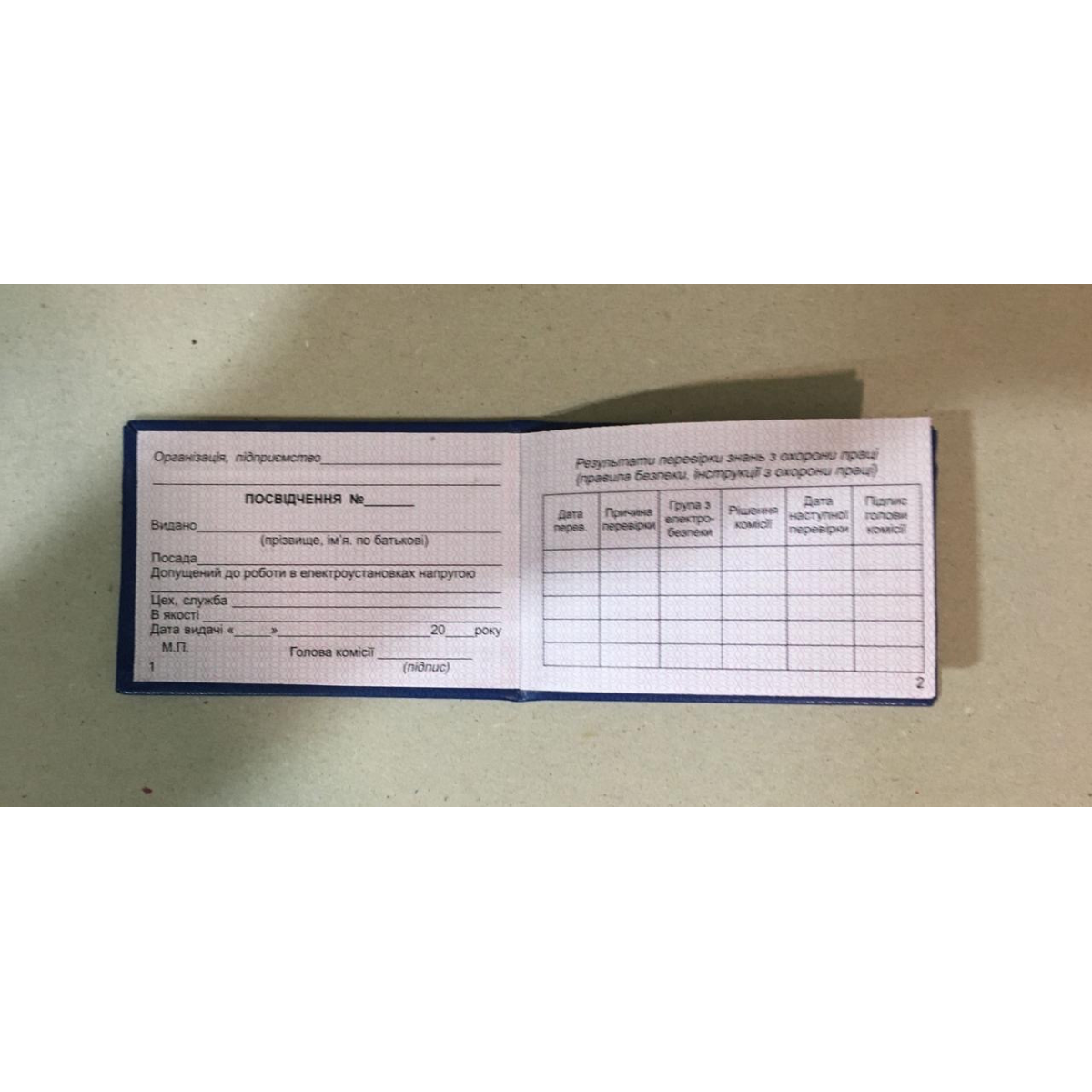 Посвідчення перевірки знань техніки безпеки(посвідчення електрика)