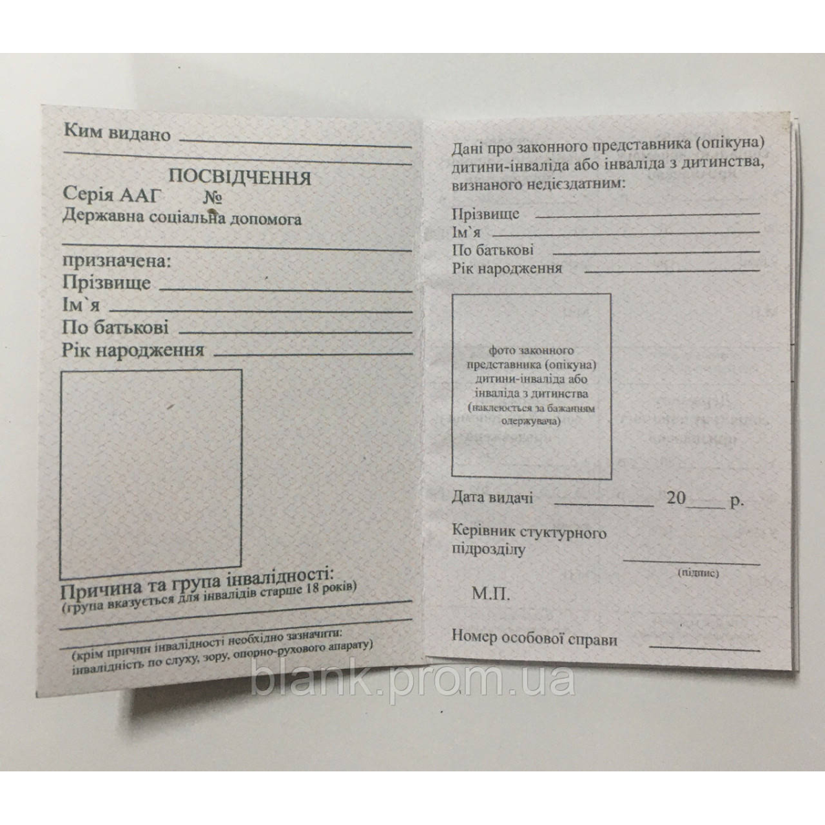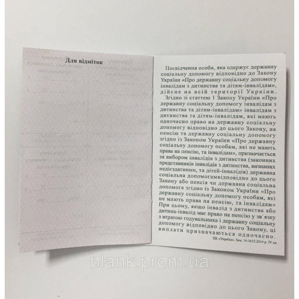 Посвідчення соціальної допомоги інвалідам з дитинства