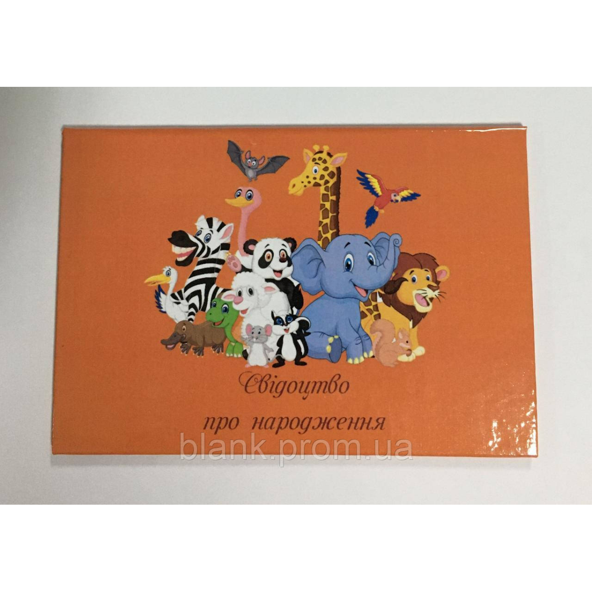 Обкладинка для свідоцтва про народження виготовлена з палітурного картону, обтягнута ламінованою обкладинкою, всередині обкладинки вклеєно два файлики для фіксації документа. Розмір у закритому вигляді: 195*130 мм