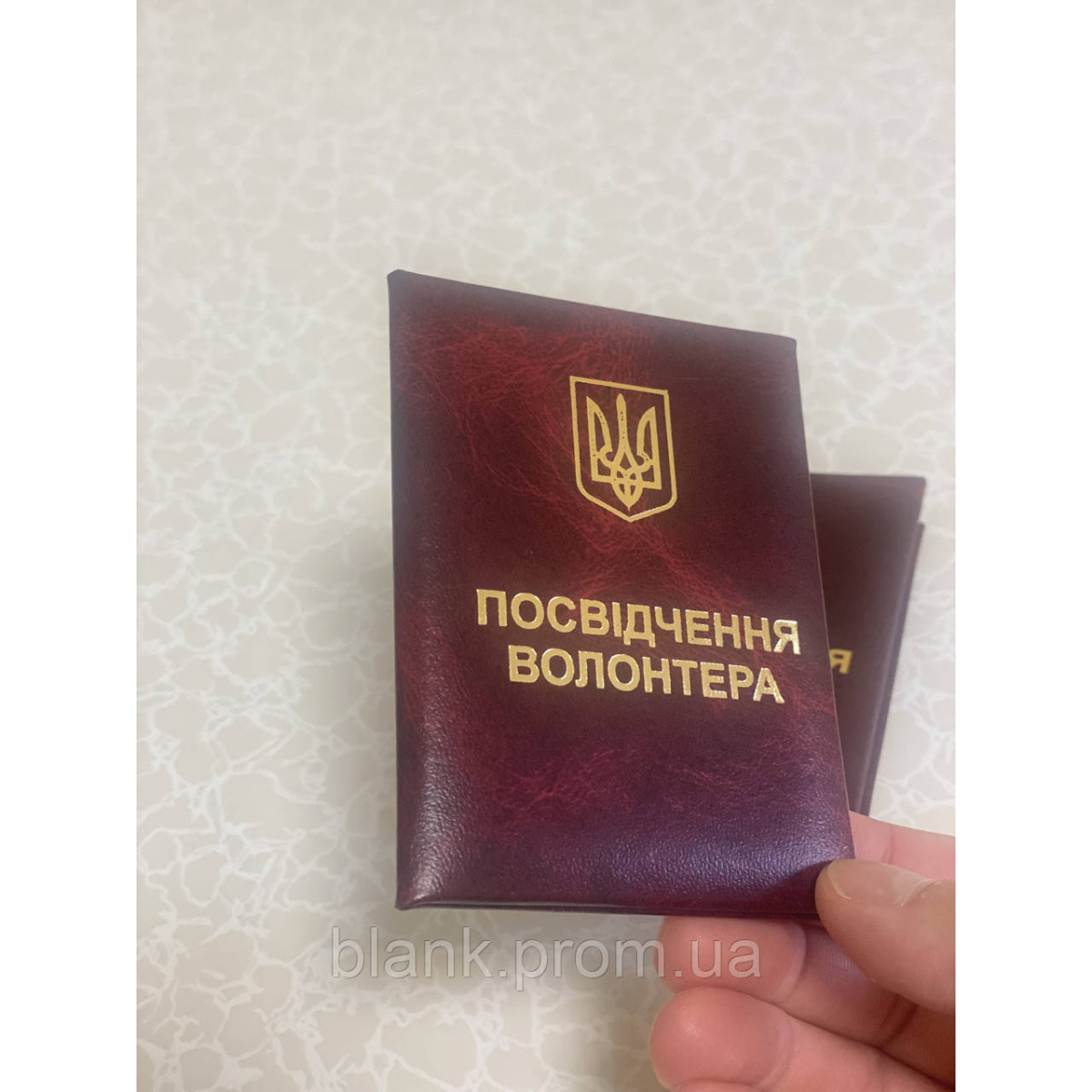 Посвідчення волонтера м`яке бордове бланк з гербом