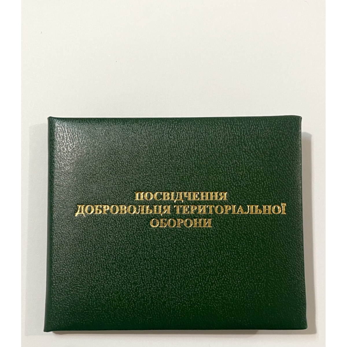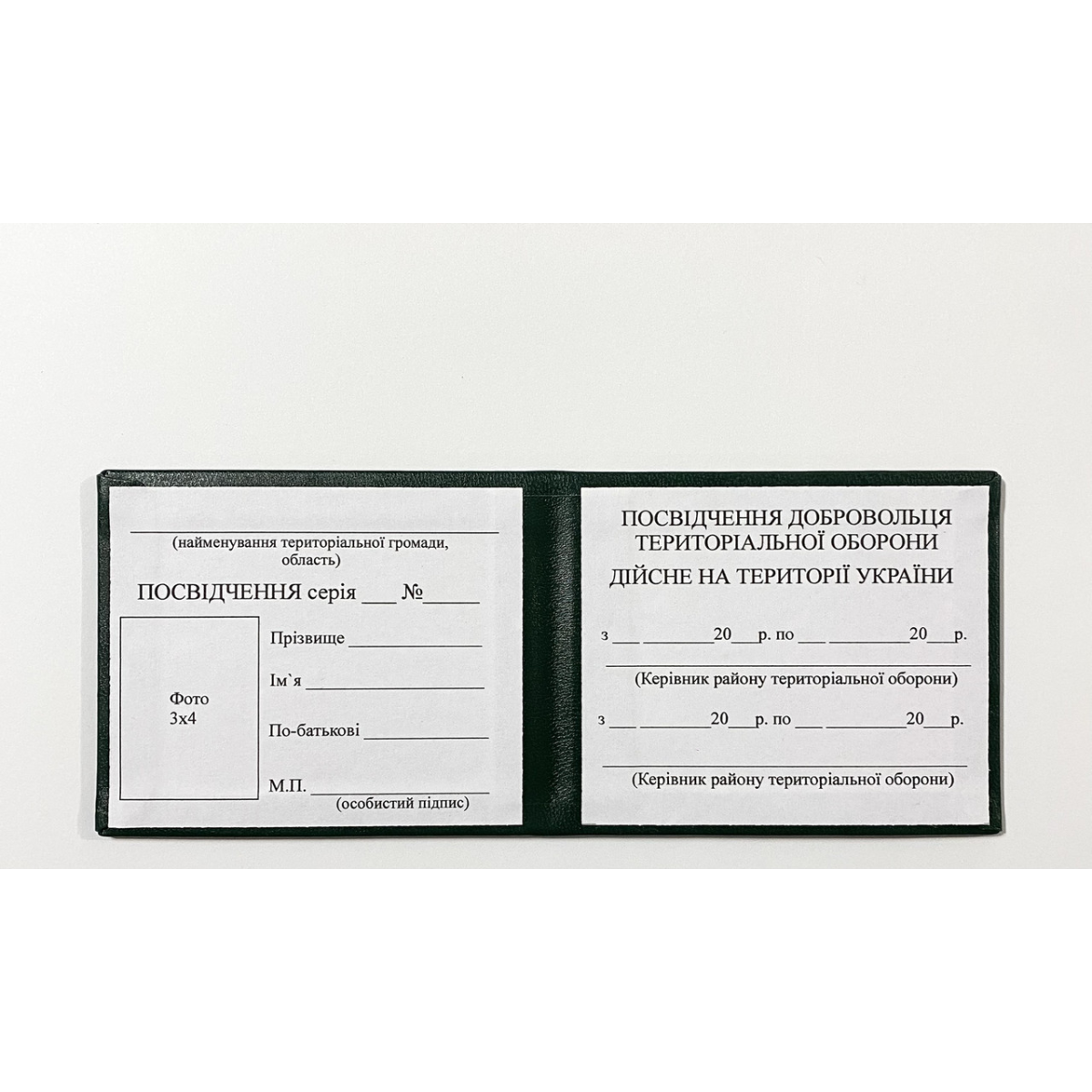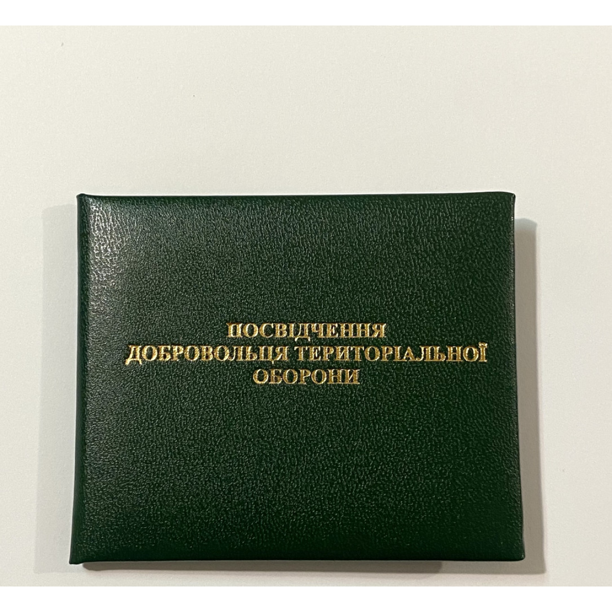 Посвідчення добровольця територіальної оборони зелене м`яке бланк ТРО