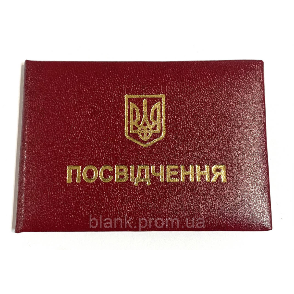 Посвідчення виготовлено з м“якого картону на поролоновій основі, обтягнутий бумвінілом бордового кольору. Всередині посвідчення між форзаців вклеєний вініловий середник, для меншого зносу документа при частому відкриванні. Розмір фото - 2.5х3.5 см. Тиснення золотою фольгою. Розмір в закритому вигляді: 90*64 мм