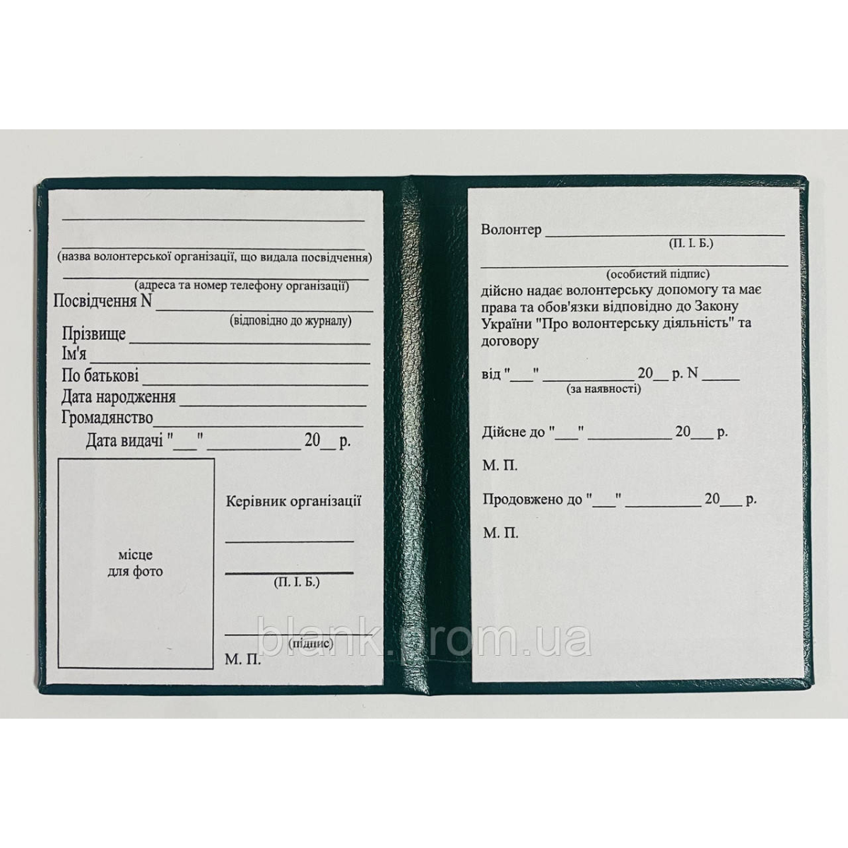 Посвідчення волонтера з гербом м“яке зелене бланк