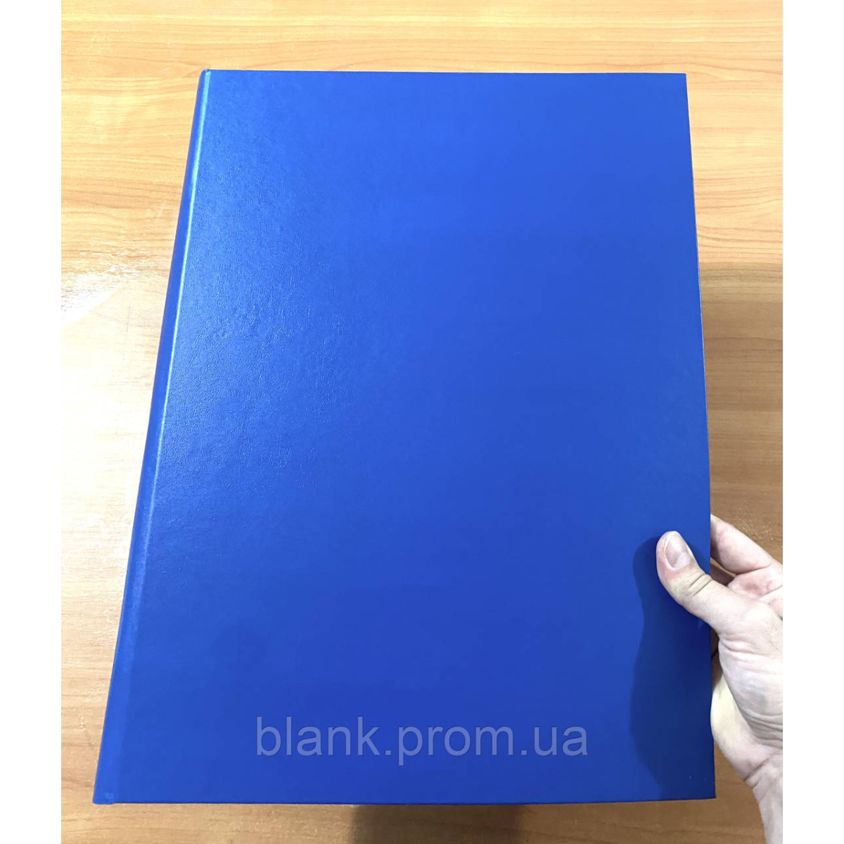 Папка А3 для зберігання документів (архіву), від 10 до 300 аркушів. Виготовлена з палітурного картону та обтягнута синім бумвінілом. Всередині папки вклеєно картонні корінці (планки) для прошивання та фіксації аркушів. Розмір в закритому вигляді: 330*430 мм