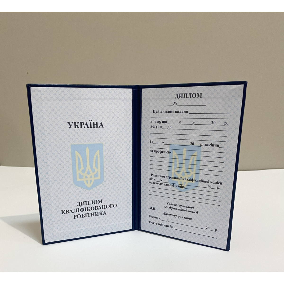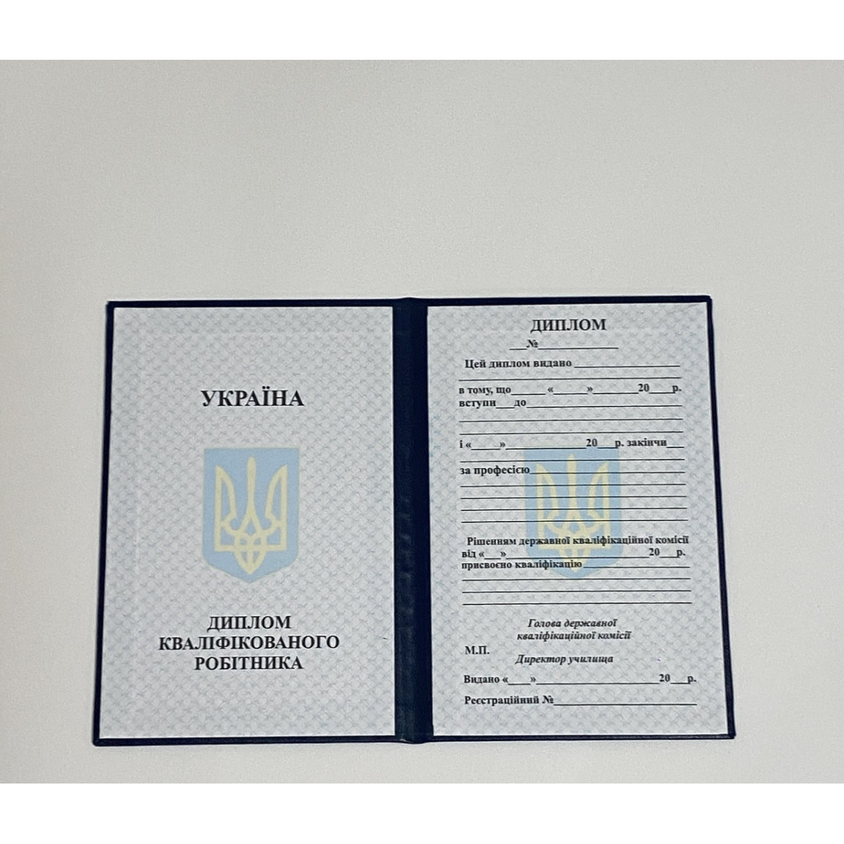 Бланк диплом кваліфікованого працівника темно-синій